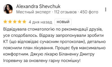 Довго обирала клініку для стоматологічного лікування. Вибір зупинила на клініці Люмі-Дент на Солом"янці, з питанням щодо імплантації. Мій лікар Гнип В.В. професіонал своєї справи. Все чітко, деталізовано розповів щодо моєї ситуації , склав план лікування та зорієнтував по кожному етапу.