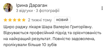 Щиро раджу лікаря Шара Валерію Григоріївну. Відчувається професійний підхід та орієнтованість на найкращий результат. Повністю задоволена, пролікували більше 10 зубів